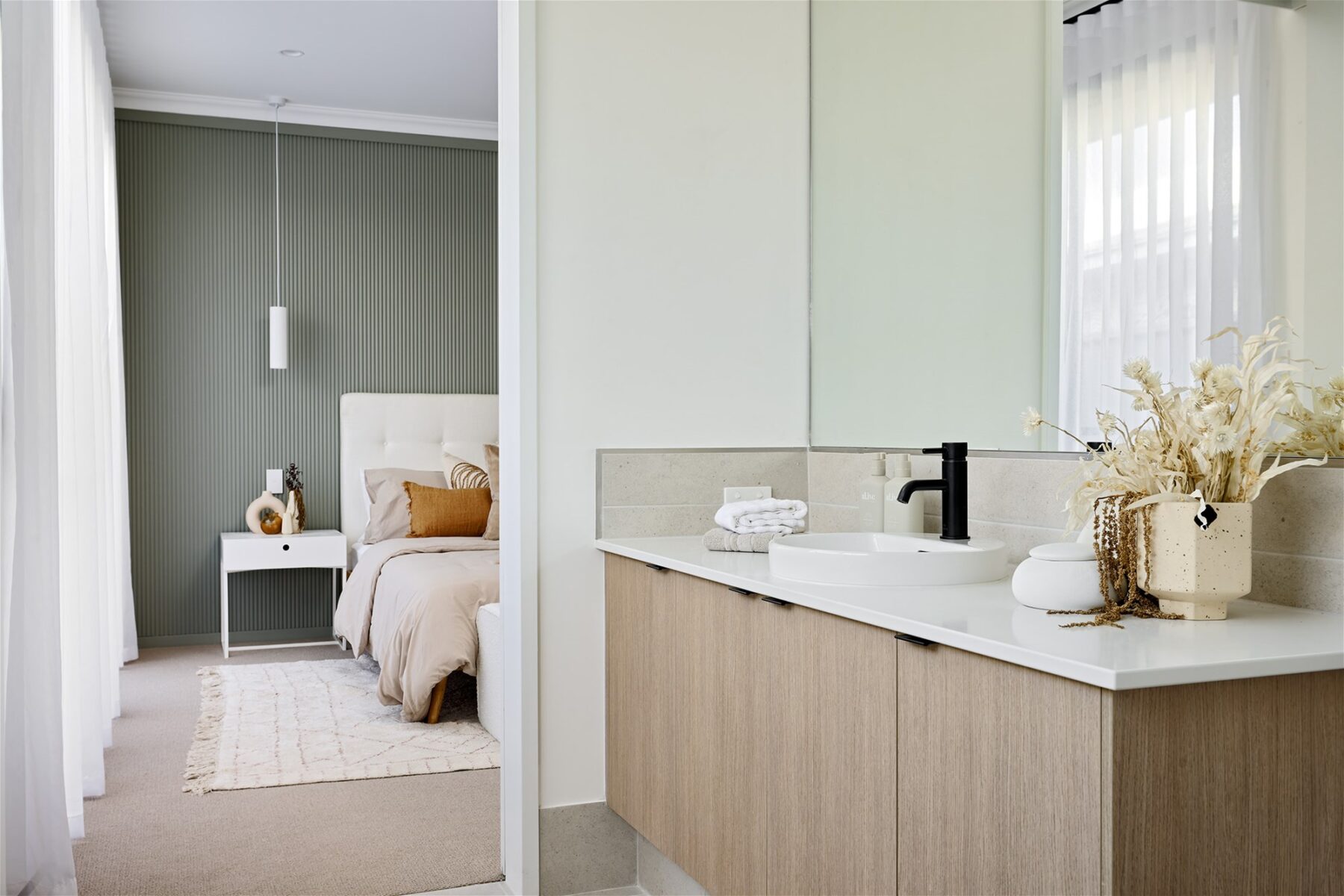 Mirrored doors to robes in bedrooms