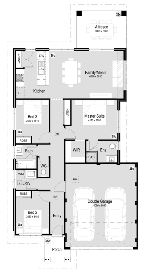 The house design may vary to comply with design guidelines, DAP’s, estate covenants or any other land developer requirements. Any cost associations for the changes that might be needed will be paid for by the purchaser.