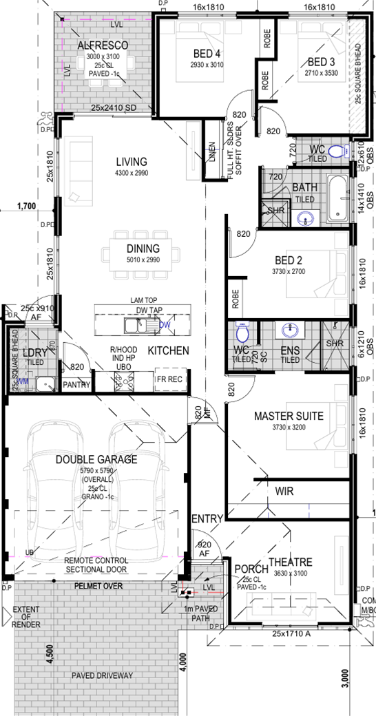 – 30c ceilings throughout the home with 27c ceilings to the porch, alfresco, and garage